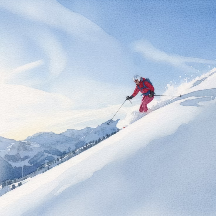 „ Skilauf ist für mich ein Ausdruck von Lebensfreude, ein Spiel mit dem eigenen Körper und seinen Möglichkeiten ähnlich dem Tanz – Sport und Tanz ist Kunst , darum habe ich mich entschlossen Skilauf in seinen verschiedensten Formen in Aquarellen darzustellen.