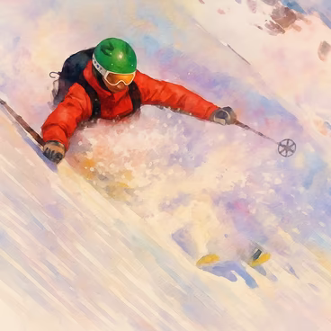 „ Skilauf ist für mich ein Ausdruck von Lebensfreude, ein Spiel mit dem eigenen Körper und seinen Möglichkeiten ähnlich dem Tanz – Sport und Tanz ist Kunst , darum habe ich mich entschlossen Skilauf in seinen verschiedensten Formen in Aquarellen darzustellen.